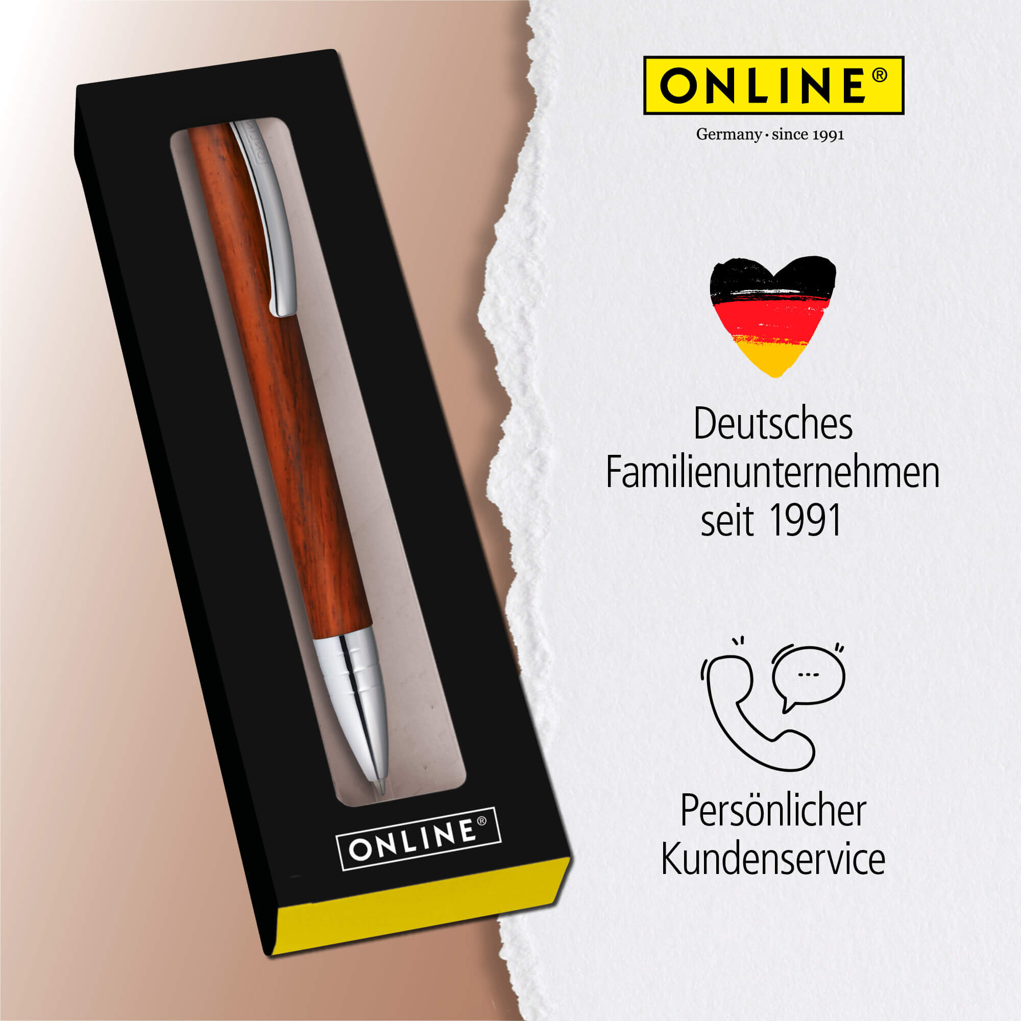 SIMPLE ELEGANCE: The ONLINE Vision ballpoint pen impresses with its high-quality, simple appearance, its smooth wooden surface and a spring-loaded metal clip – serious and ideal for university, the office or your own desk.