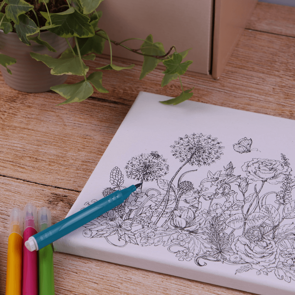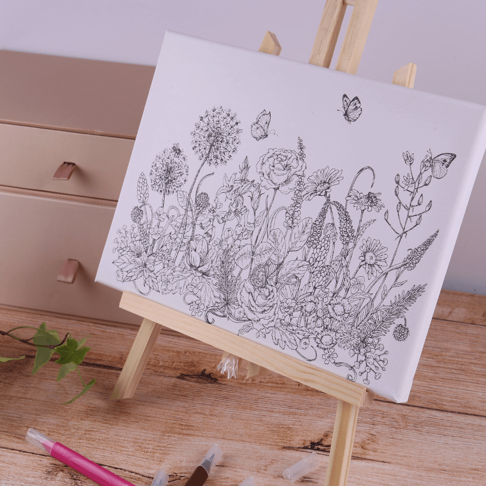 Canvas on wooden easel incl. 6 brush pens design Flowers
