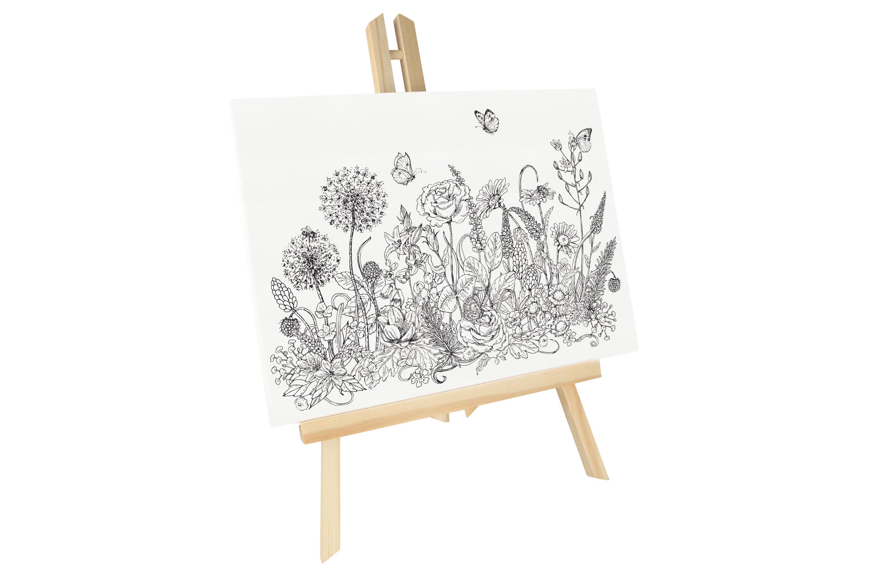 READY TO DECORATE: The colouring canvas arrives at your home already on a wooden easel. After the creative act, the artistic result can be hung directly on the wall and admired.