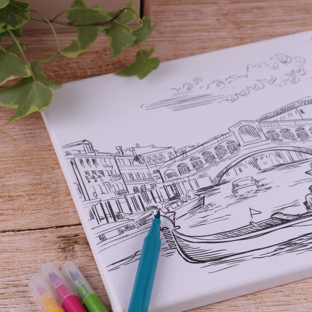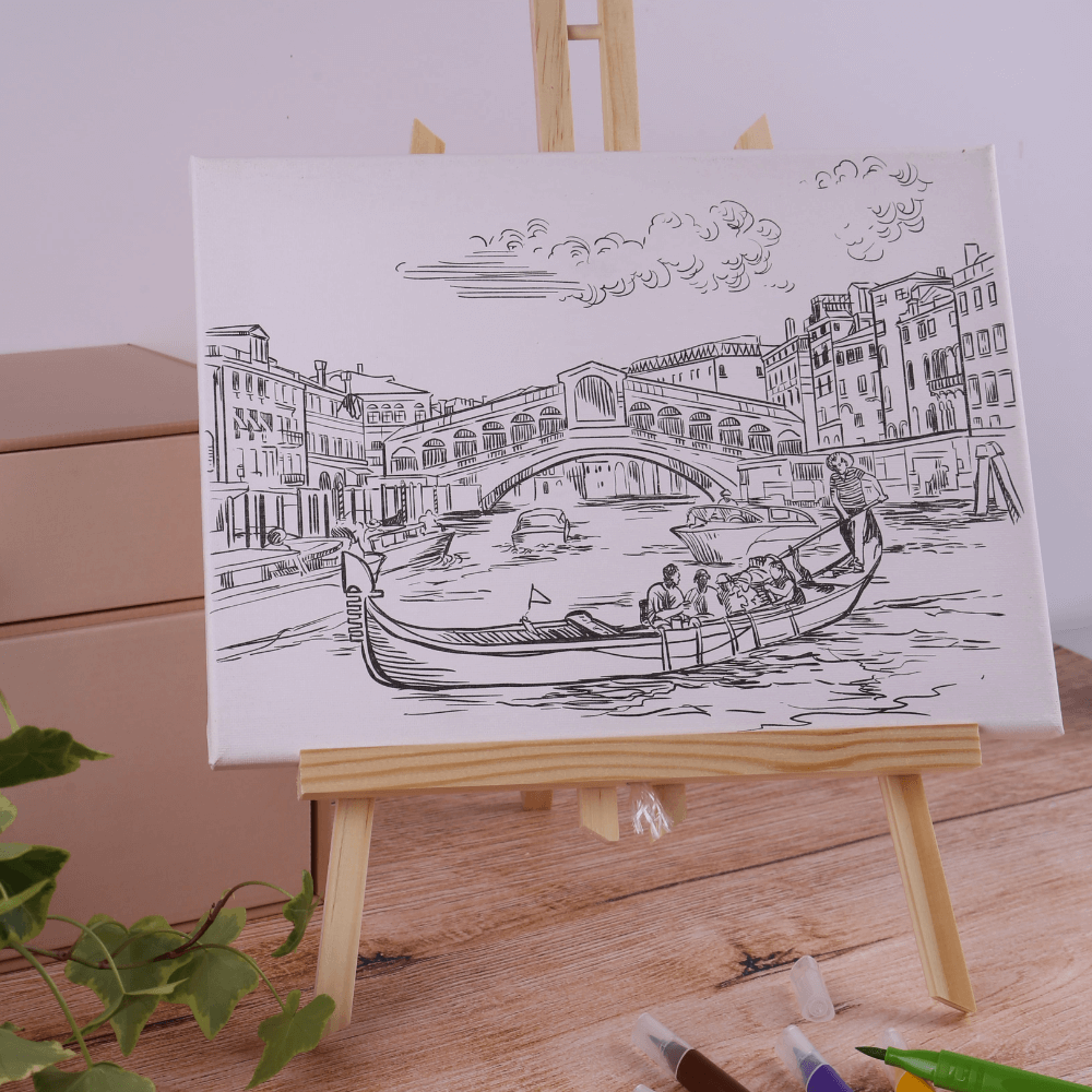 Canvas on wooden easel incl. 6 brush pens design Venice
