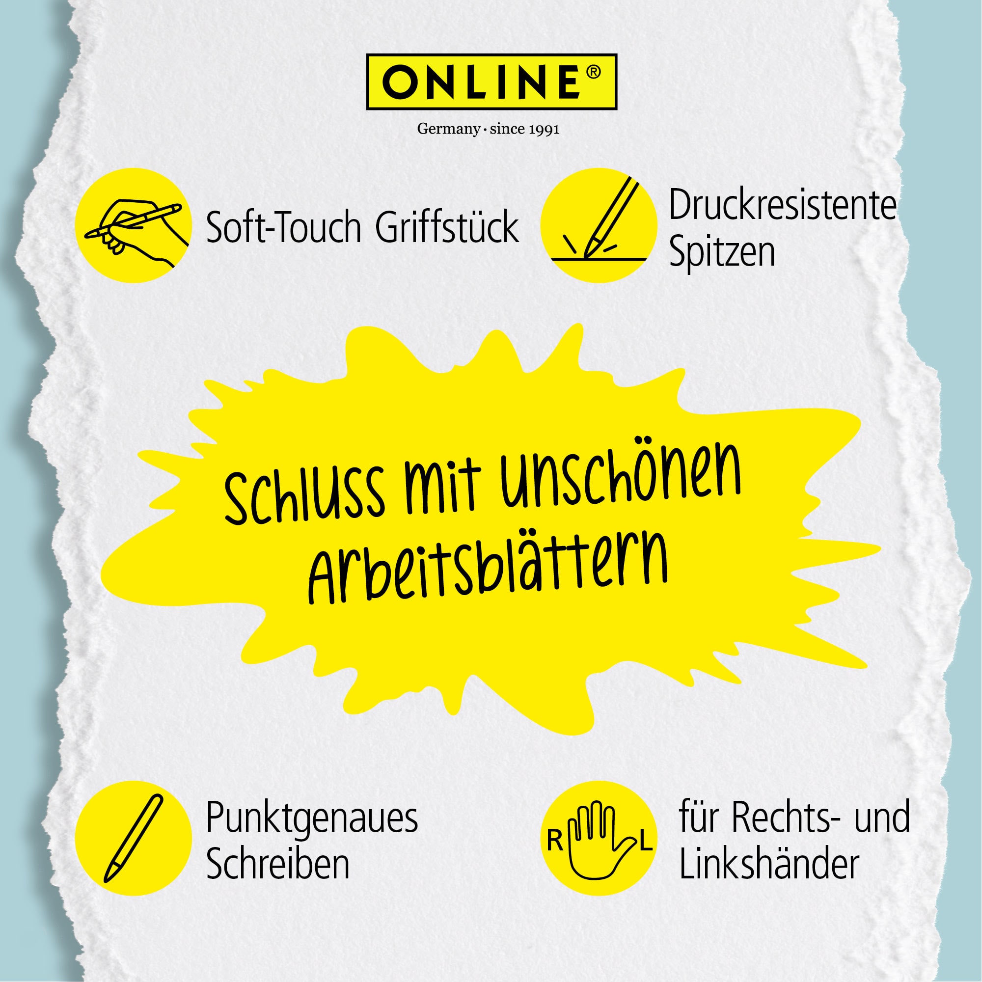ONLINE everywhere: The erasable pens in the writing colour blue are ideal for learning to write & design. The ergonomic, classic design fits perfectly into everyday life, the office or university. A smart gift for all students & pupils.
