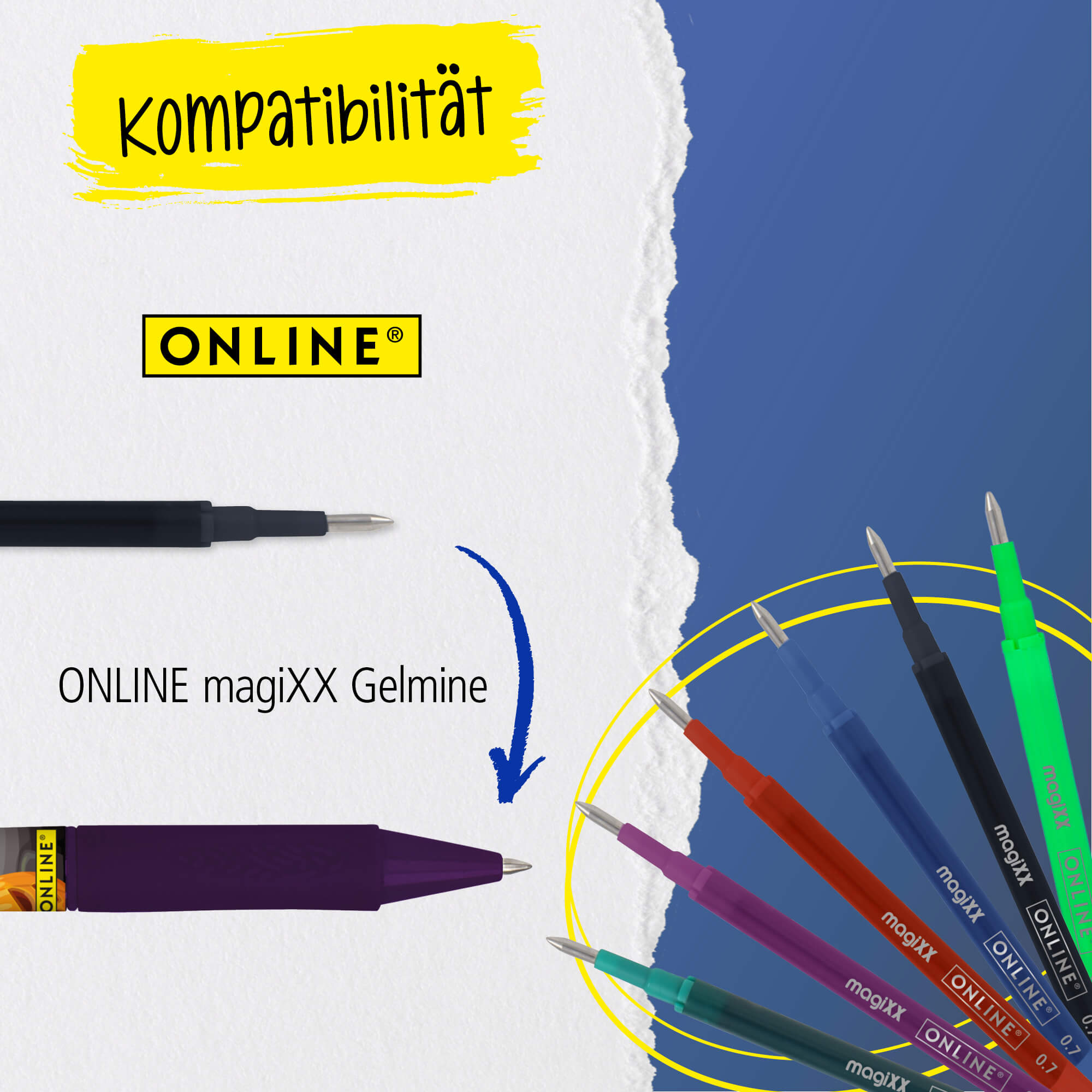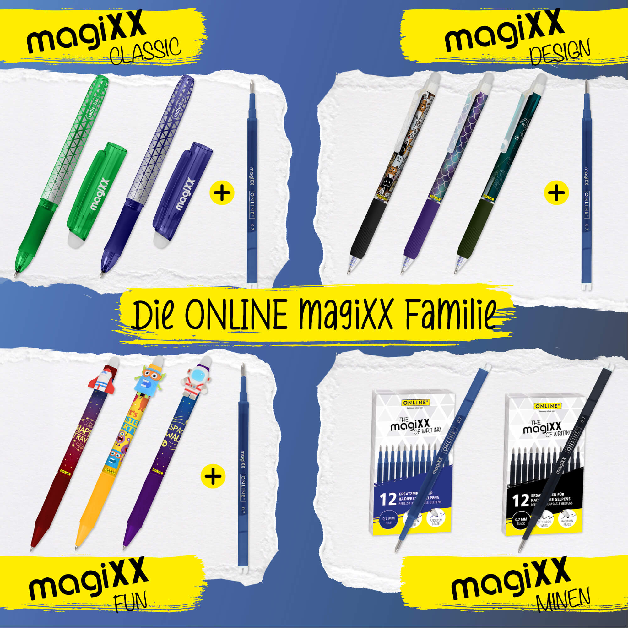 ONLINE magiXX Fun - your new favourite pen: Our erasable gel pens make it easy to correct small mistakes without smudging the ink. Magixx erasable gel pens release gel ink evenly and continuously, which can be completely removed. For clean writing and reliable error correction.