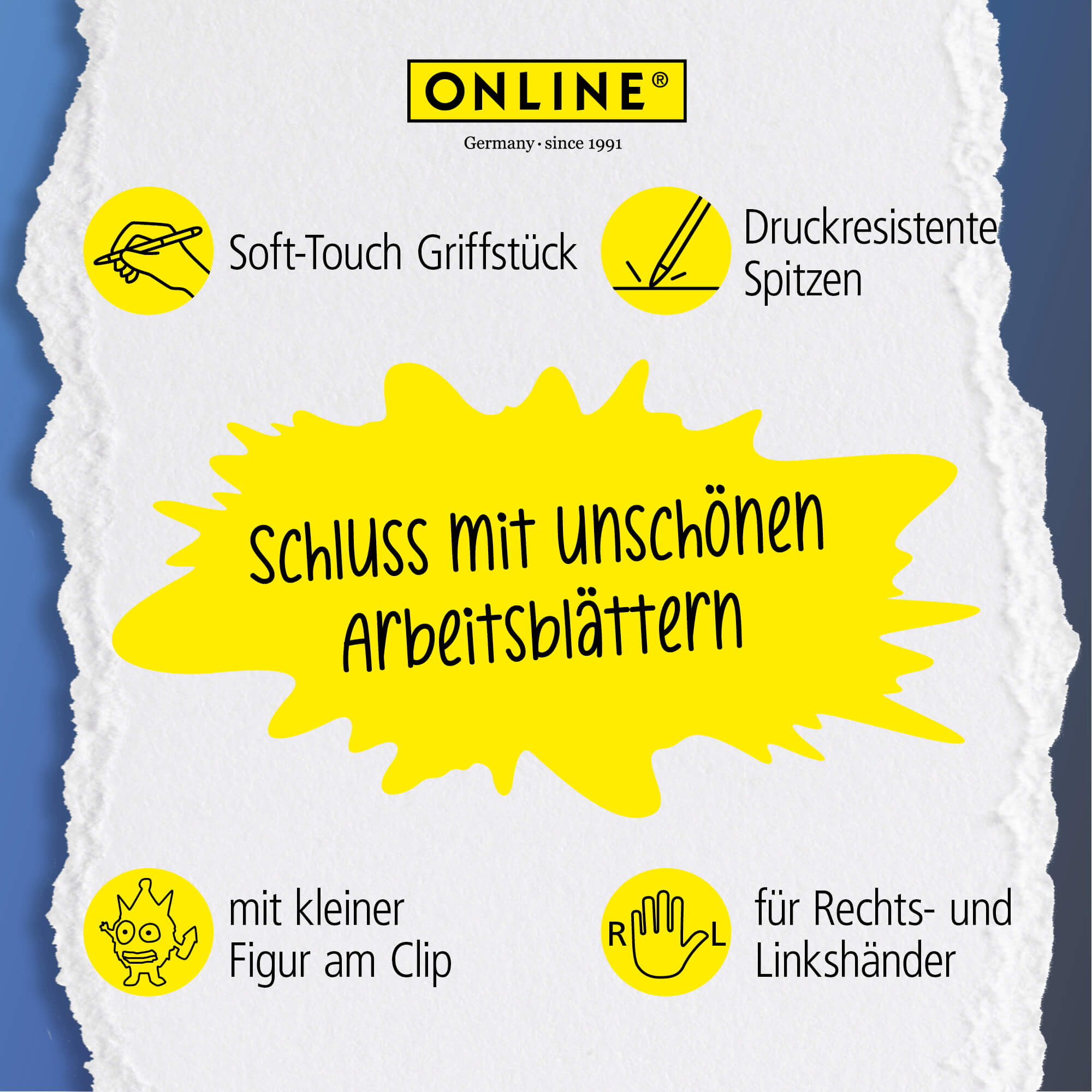 ONLINE everywhere: The blue erasable pens are ideal for learning to write and creating. Their ergonomic design is perfect for everyday use, in the office or at university. A practical gift for all students and pupils.
