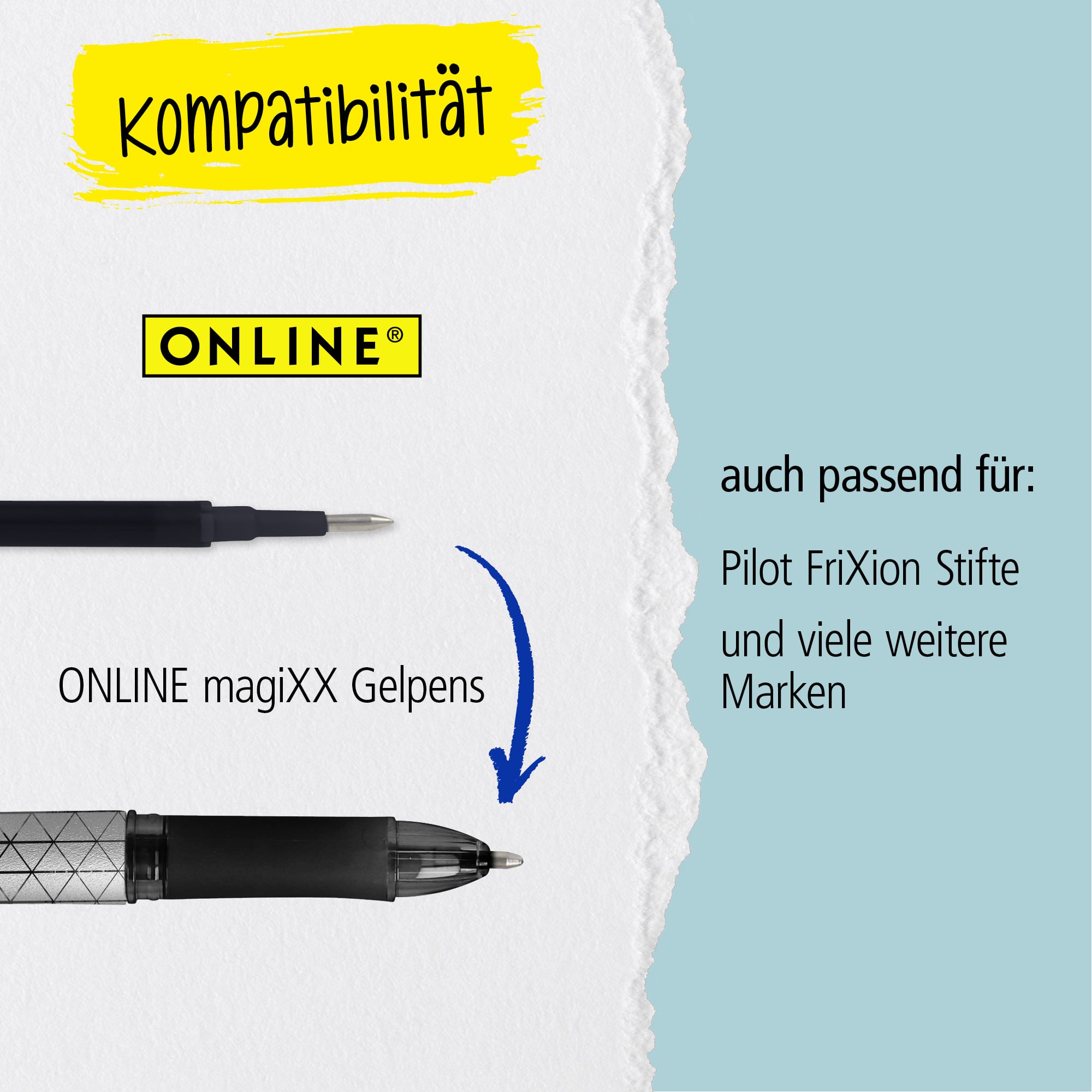Great writing feel: Even ink flow & consistent colour are standard with ONLINE gel pens. The replacement refills for erasable pens are ideal for learning to write & are practical for everyday life & the office. The refills are characterised by a scratch-free writing flow without any drop-outs.