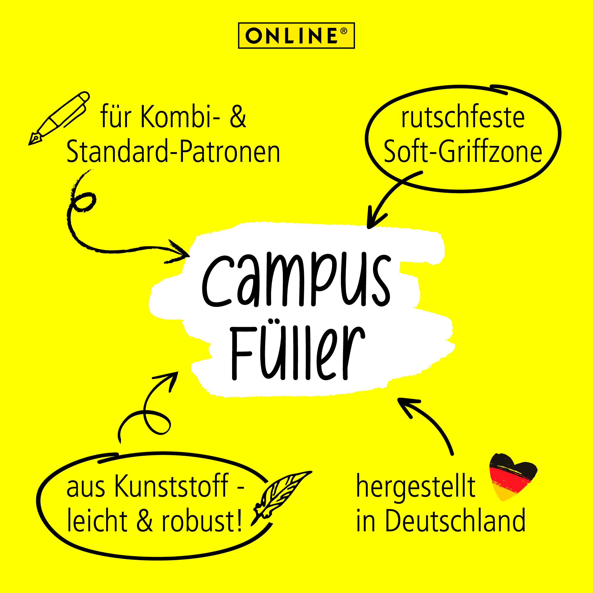 The Campus designer fountain pen is unbelievably comfortable to write with. The ergonomically shaped soft grip and high-quality iridium nib make it a particularly relaxing experience to write with, even in continuous use. The soft touch along the shaft and the stable nickel-free stainless steel clip featuring a top-quality design round off the superb design and precision finish. Each individual pen represents tested quality - Made in Germany.