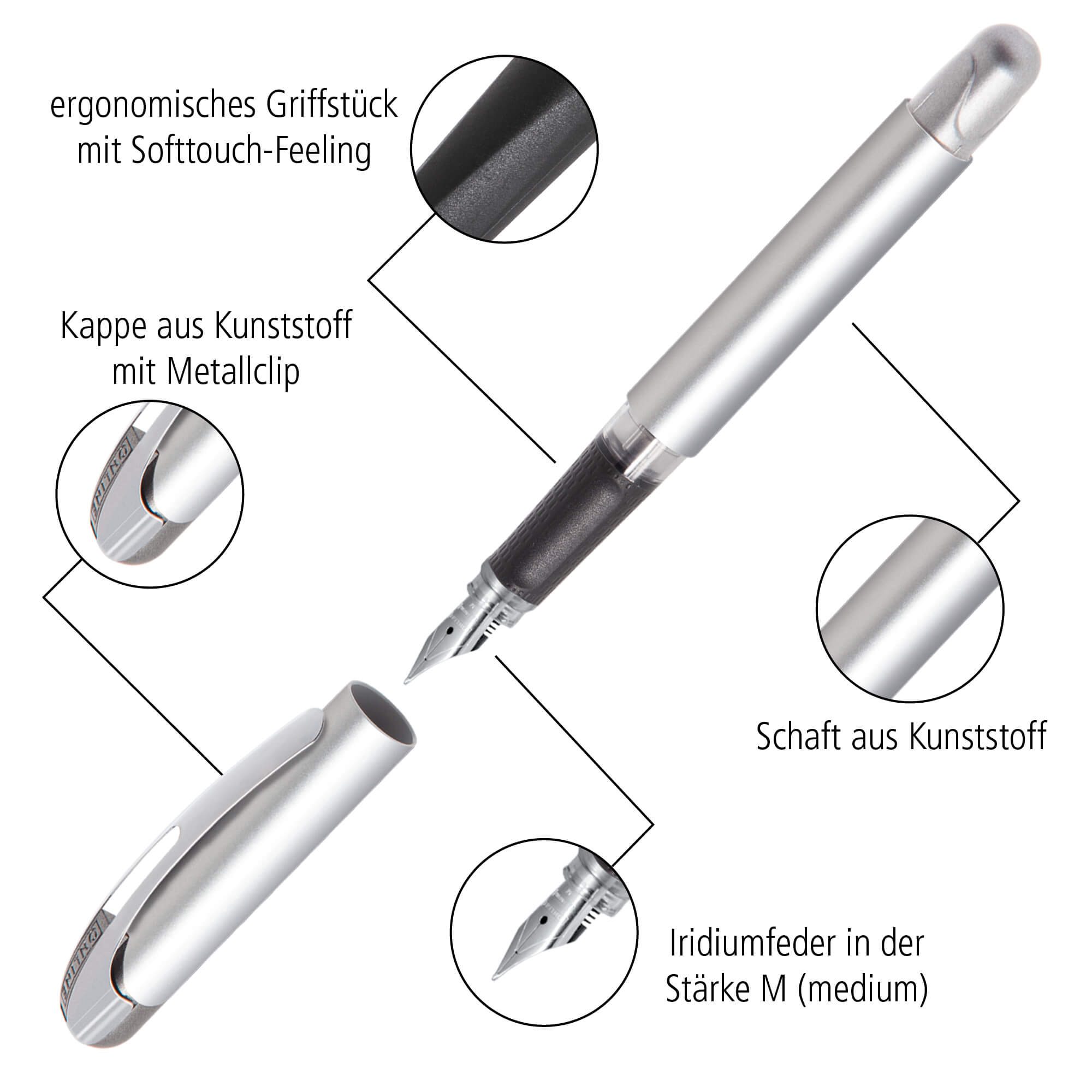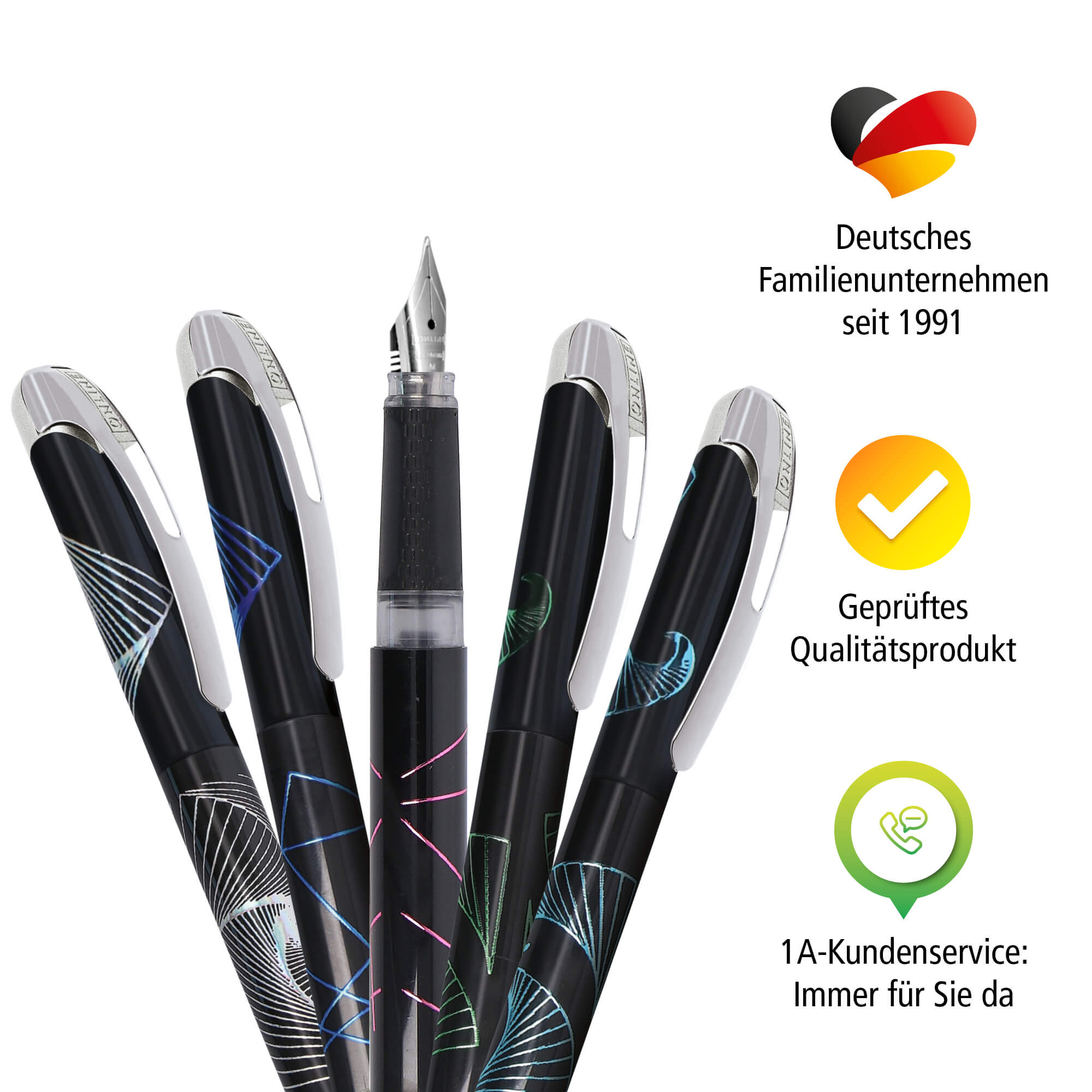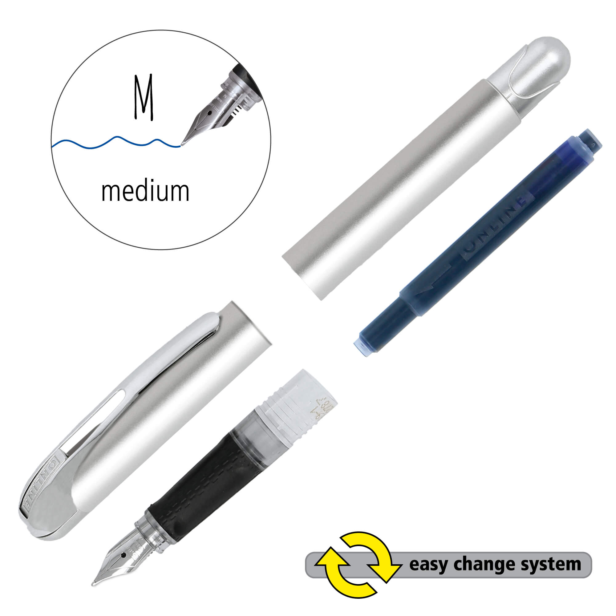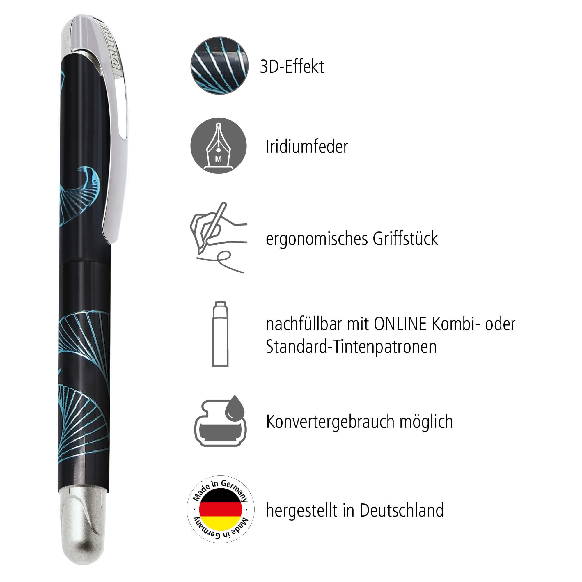 The cult fountain pen presents itself in a new outfit. The slender handle and top quality still remains a feature, while the cap comes with a high-quality chromed metal clip of modern design. The new College fountain pen instantly impresses with its newly redesigned shape, is specially honed and is available with high-quality iridium nib in the strengths M, F and EF – also obtainable for left-handers. In addition there is the Soft-touch grip, which furthermore supports the ergonomics, allowing a particularly relaxing and pleasantly comfortable writing. For ONLINE combi ink cartridges and standard ink cartridges. ONLINE provides a 5-year warranty on the elegant iridium nib. Each individual pen represents tested quality - Made in Germany.