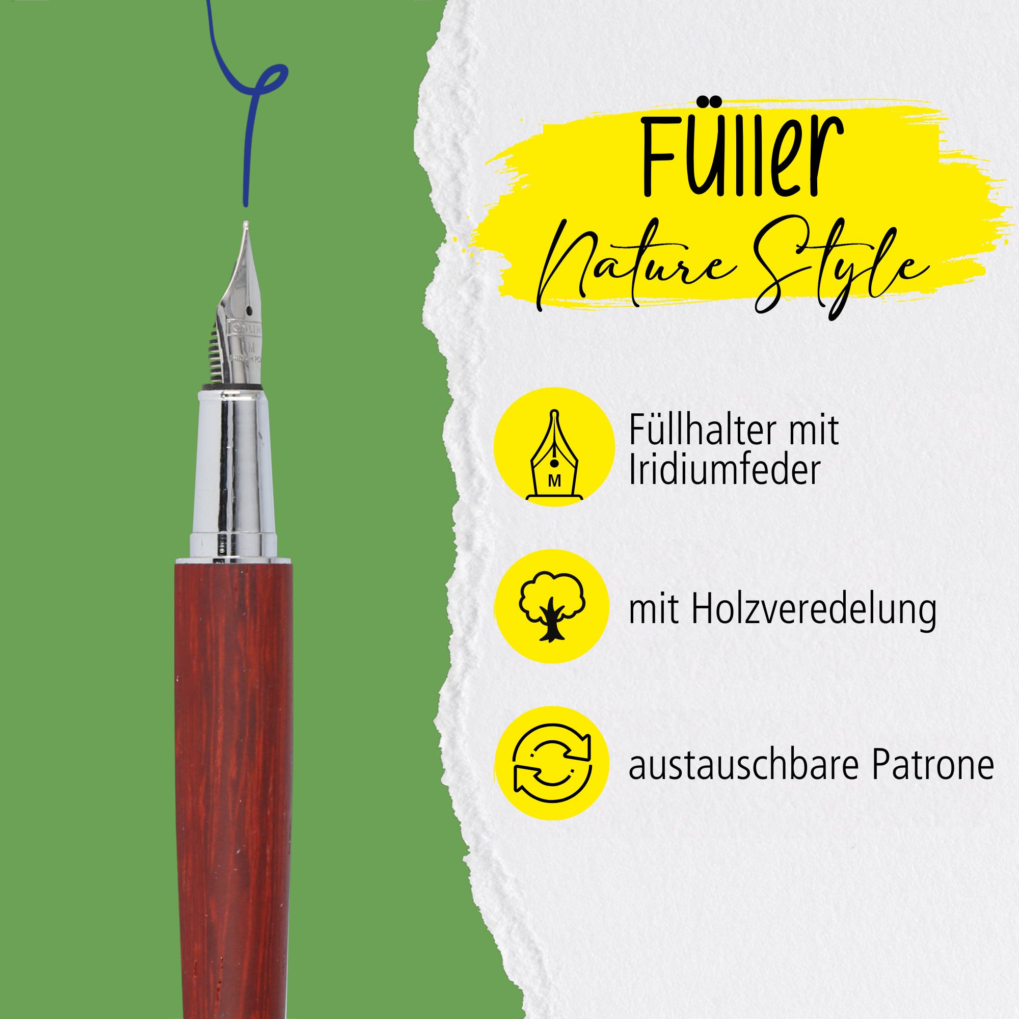 The iridium nib in the tip guarantees an even ink release and a first-class writing experience. Whether you are taking handwritten notes, writing letters or creative writing, this wooden fountain pen is a reliable companion for every occasion. Discover the combination of natural beauty and functional precision