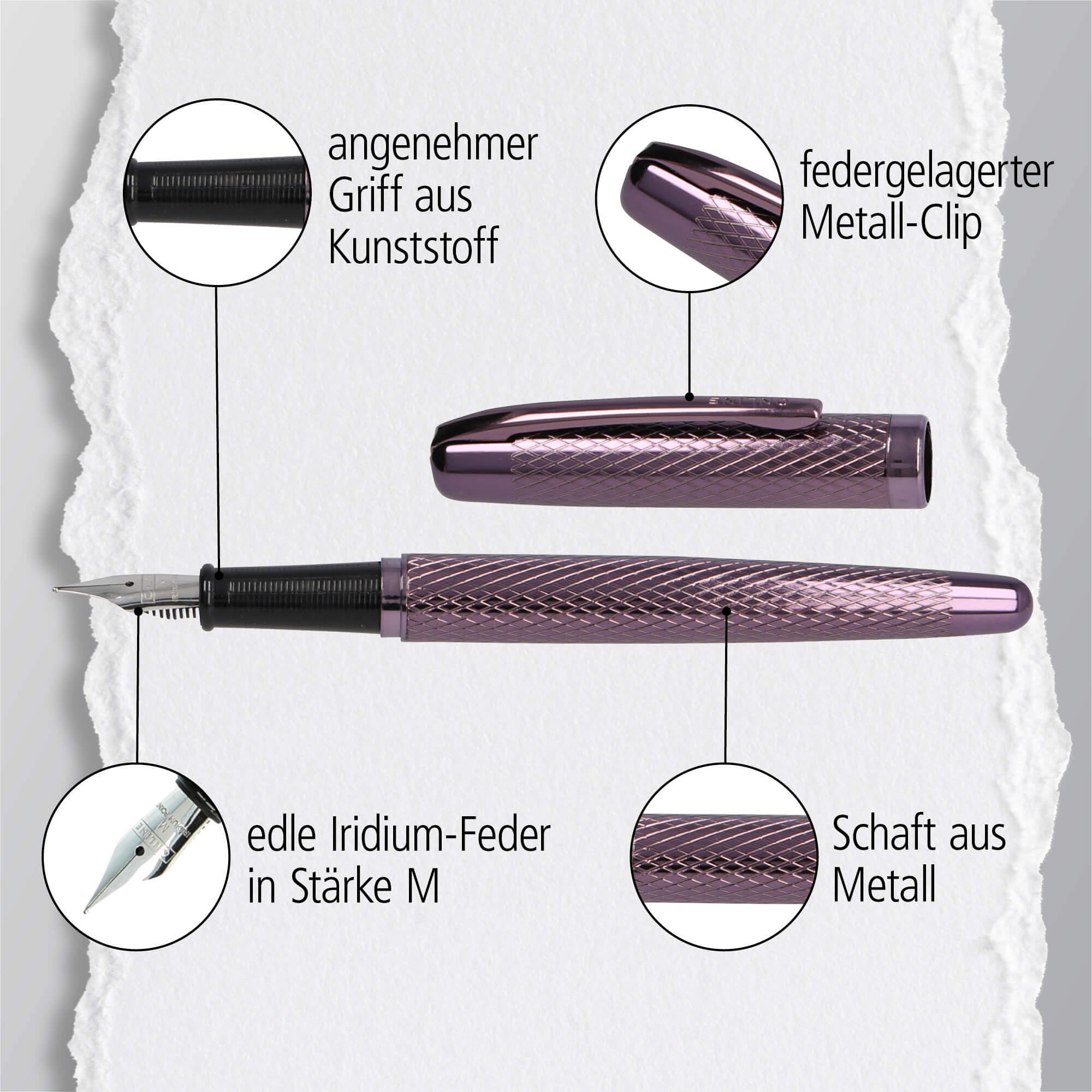 This ONLINE design metal fountain pen is equipped with a high-quality M nib (medium) and offers the highest level of writing. Delivered in a gift box, every writing instrument is an elegant gift.