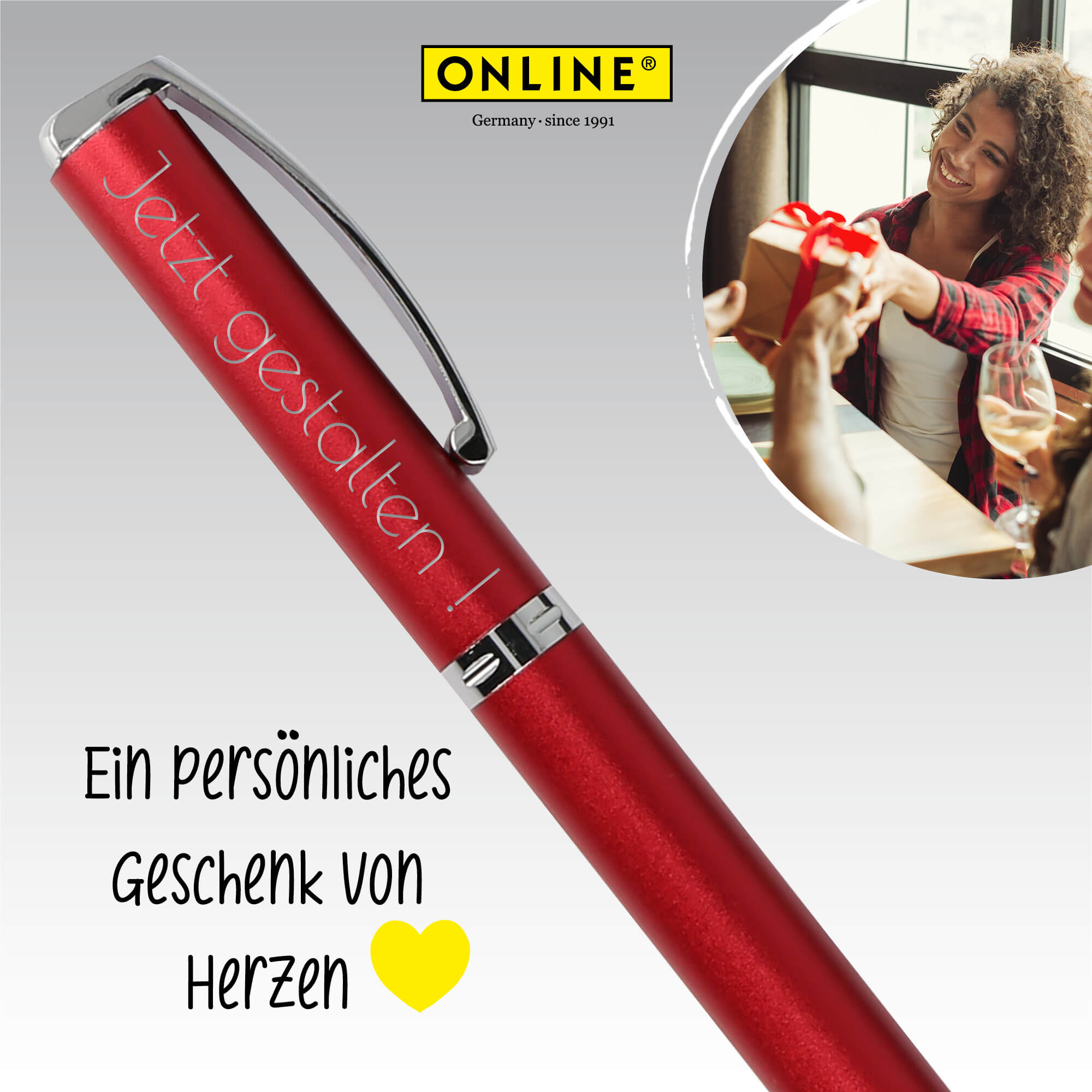 SIMPLE ELEGANCE: The ONLINE design fountain pen impresses with its high-quality, simple appearance, a robust aluminium surface and a spring-loaded metal clip. Together with the gift packaging, it makes an ideal present for lovers of clear shapes and precise technology - and is guaranteed to be an eye-catcher at university or in the office.