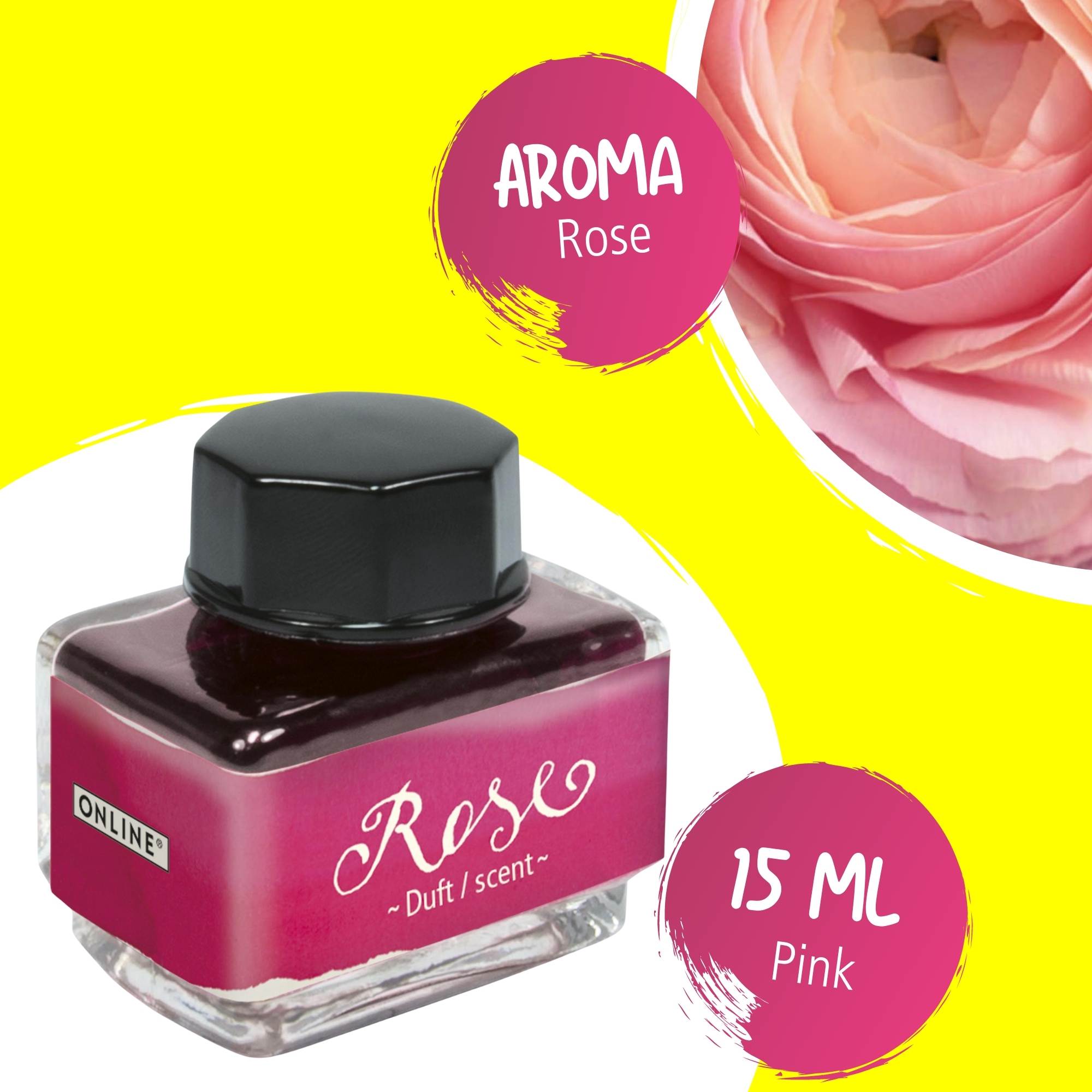 High-quality ink, colour Pink, with scent “Rose”, has a mood-lifting effect. Inspired by beguiling fragrance substances from nature, these innovative inks release their unique aroma during writing. These scented ink colours will inspire you while writing and creating beautiful letters – and will captivate the recipient. A message that bestows a special charm on the written word. Every ink bottle is packed in a high-quality packaging.