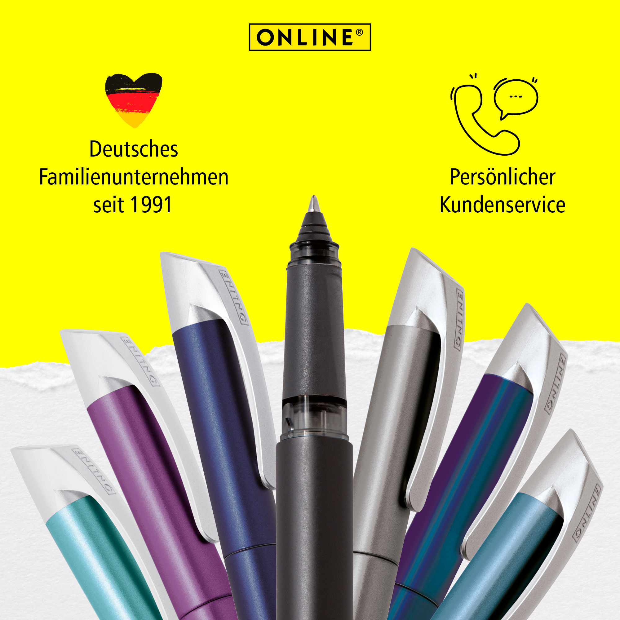 The Campus ink cartridge rollerball from ONLINE is the top pen for school and professional use. Featuring a trendy design, it is superbly finished. It is easy and cheap to refill using standard ink cartridges. This modern designer pen with its stable clip featuring a top design guarantees a consistently high standard of quality.