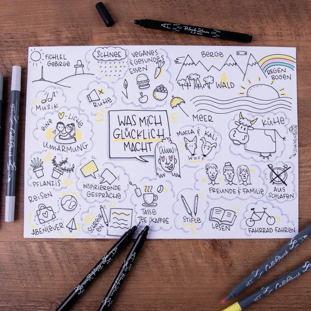 If you want to get started creatively right away, you can stock up on the required creative products for lettering and calligraphy in our ONLINE shop. You can find more information about our brush pens, examples and design options and exercise sheets for download here.