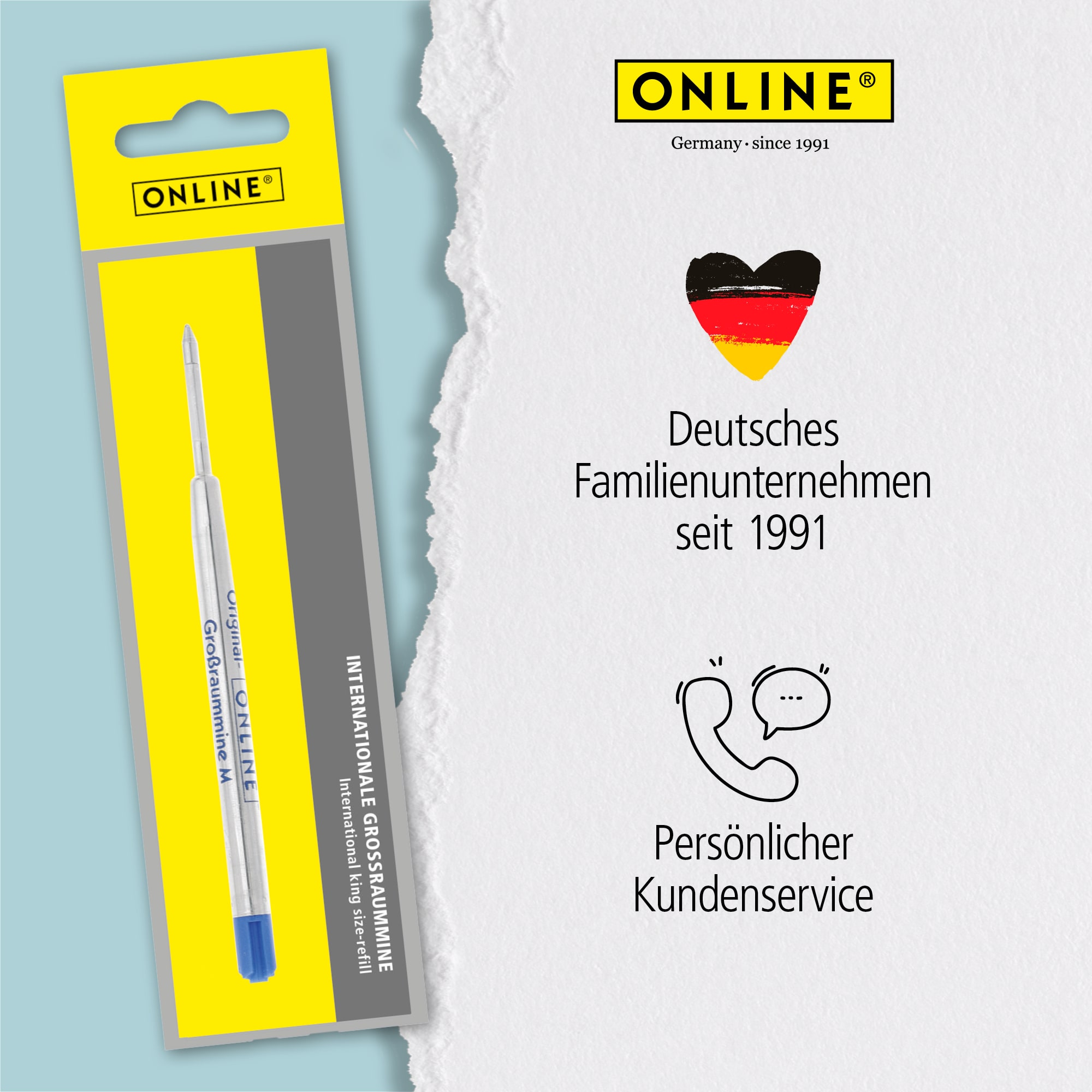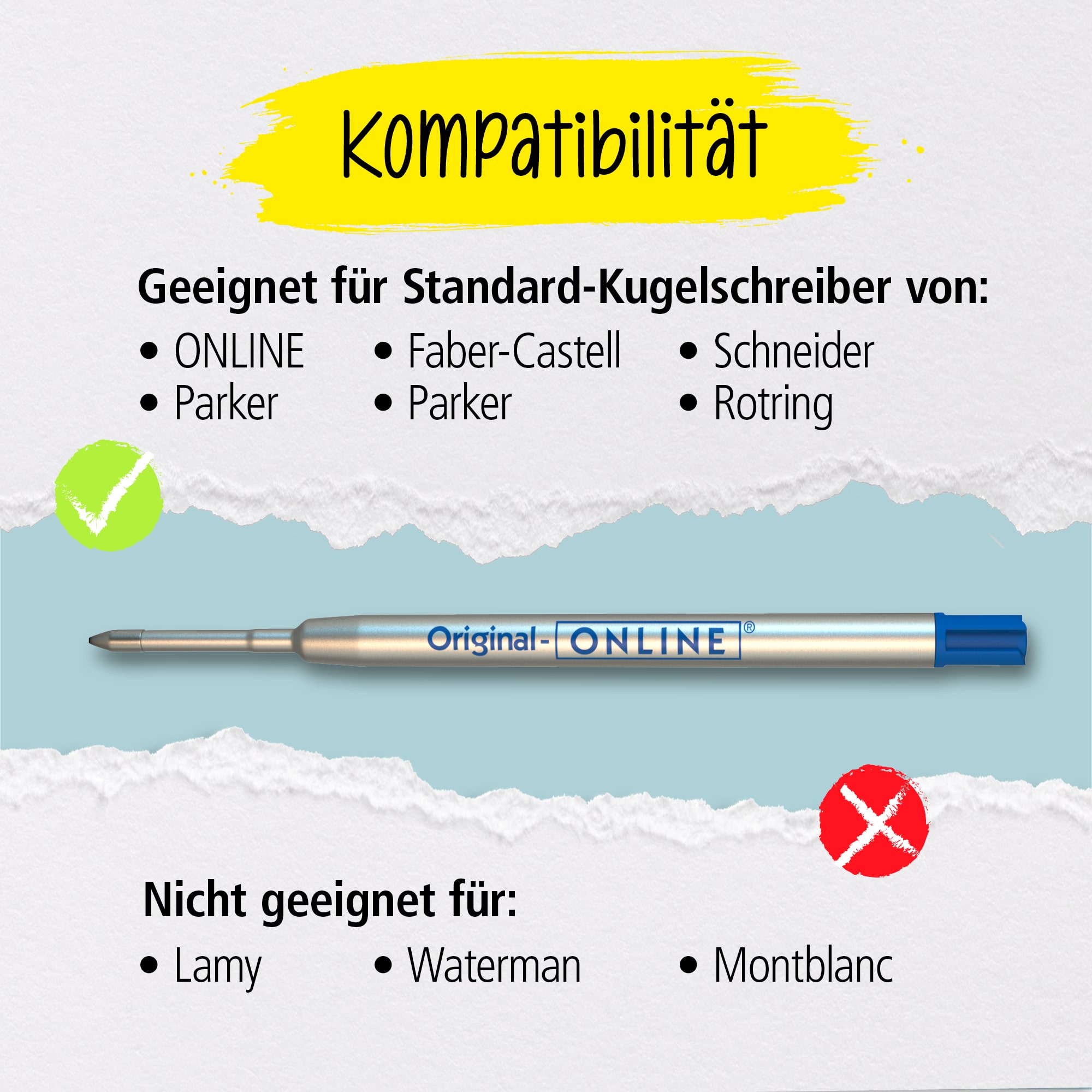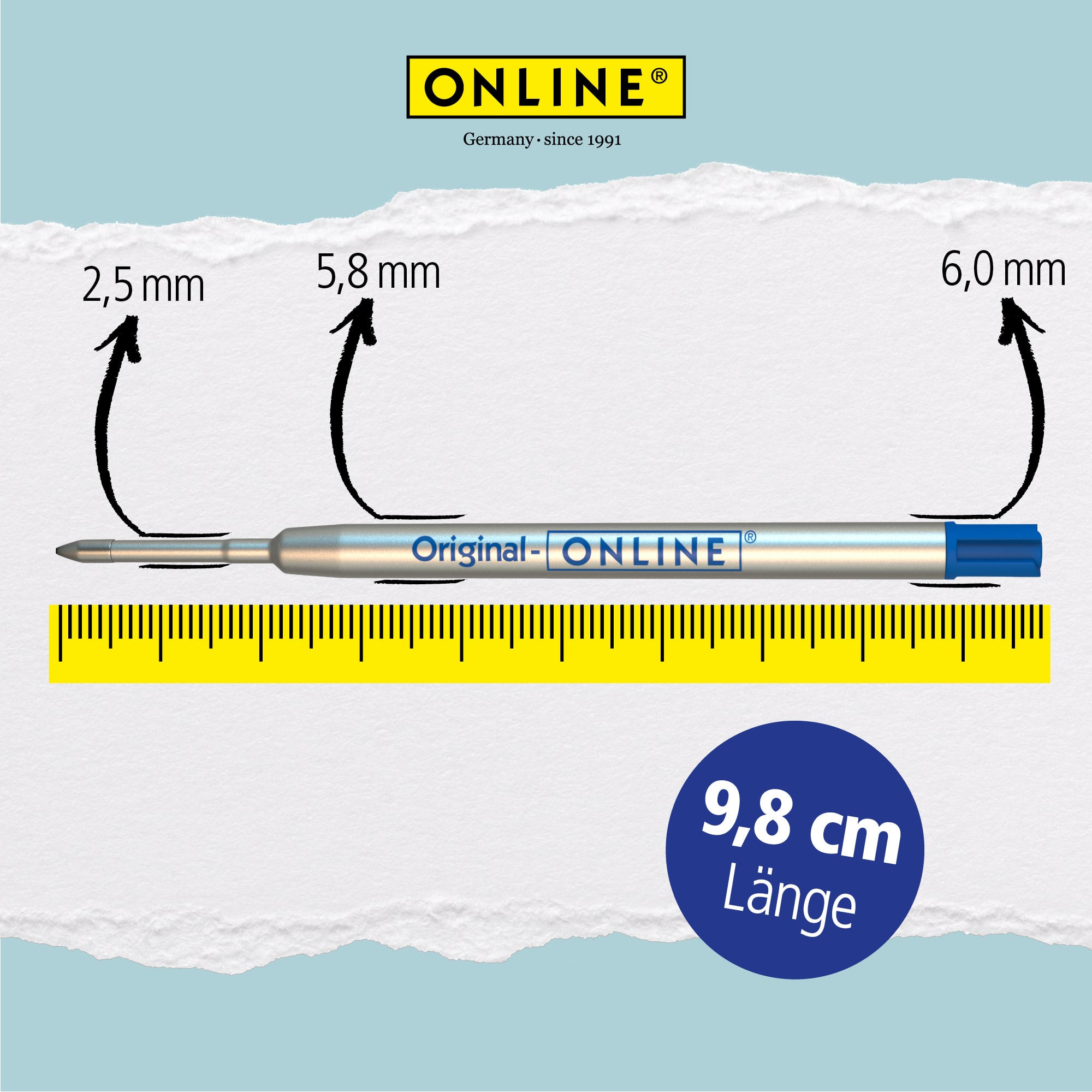 Ballpen-refill, standard king size, high quality, made in Germany, metal, width M, blue ink, documentary proof, water proof; stainless steel ball, available in black, red and width B in black; ISO 12757-2 G1; Contains 1 refill