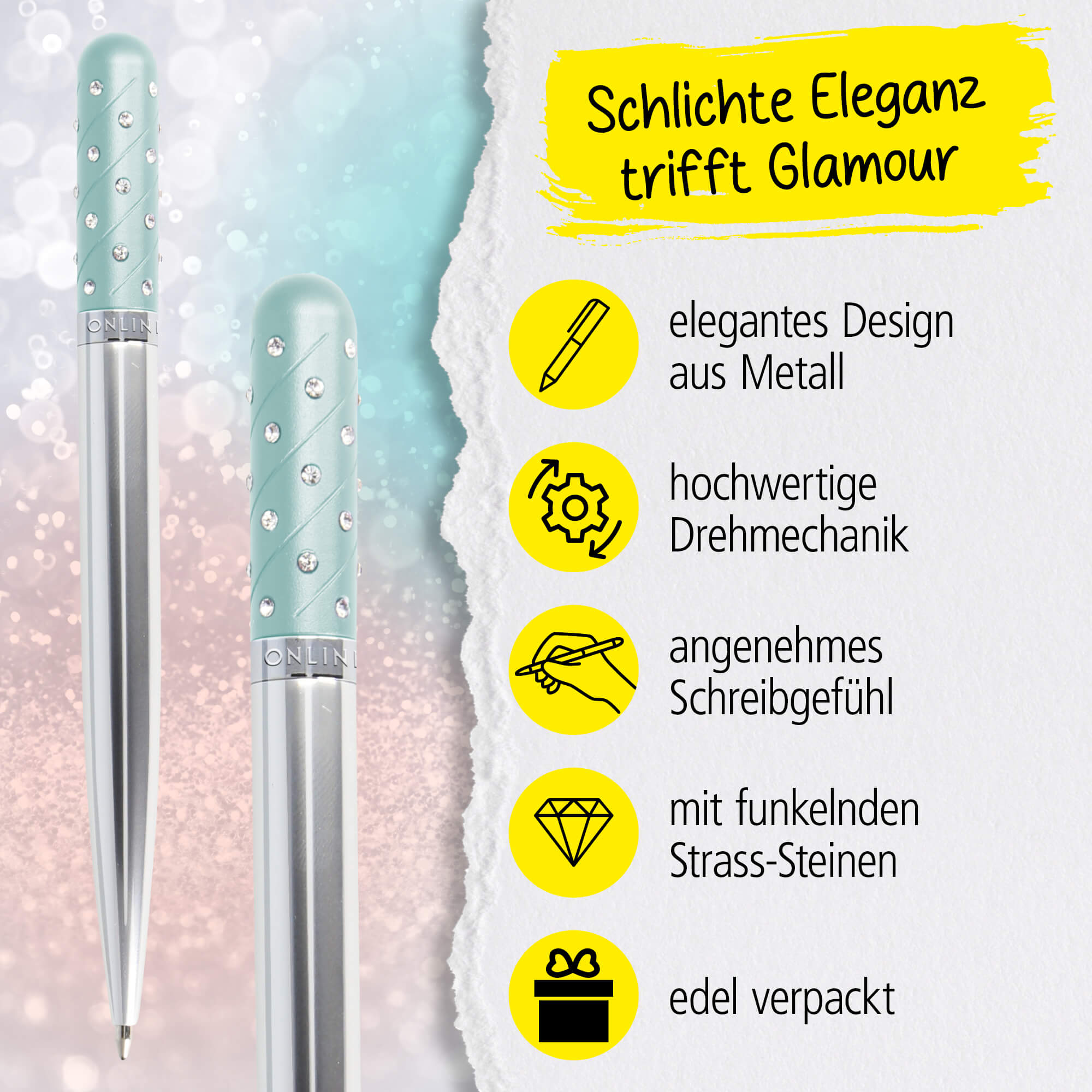 - DESIGN BALLPEN: The ballpen is made from pure aluminium. The sparkling rhinestones give the pen a modern look