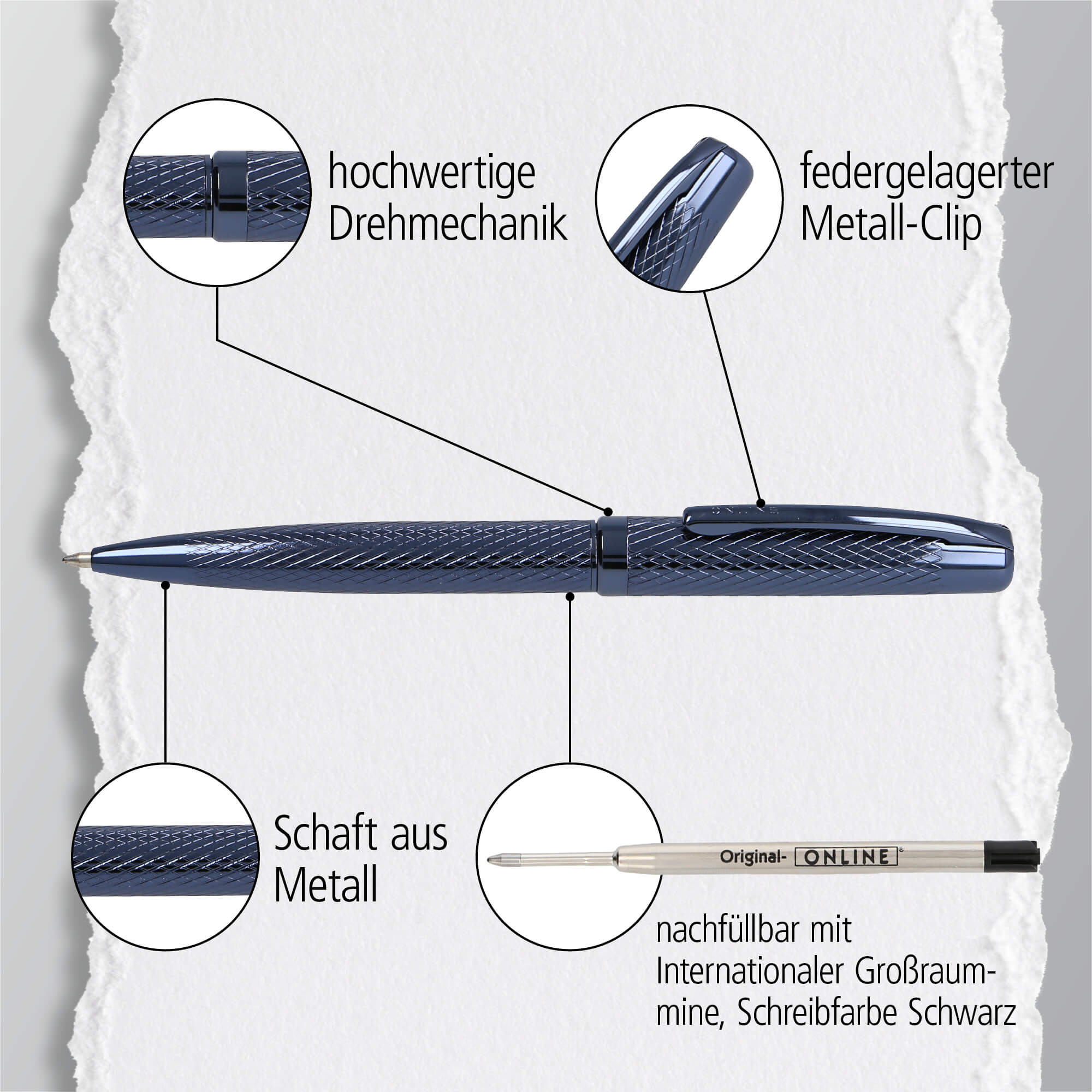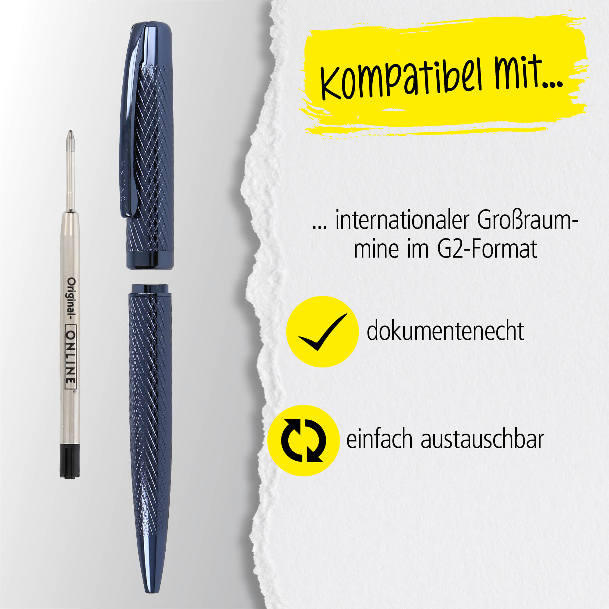 Equipped with the ONLINE large-capacity refill, the Eleganza Diamond Night writes particularly smoothly and lasts a long time. Every stroke glides smoothly across the paper - ideal for notes, letters or important documents. Thanks to the high quality, you will enjoy this biros for a long time.