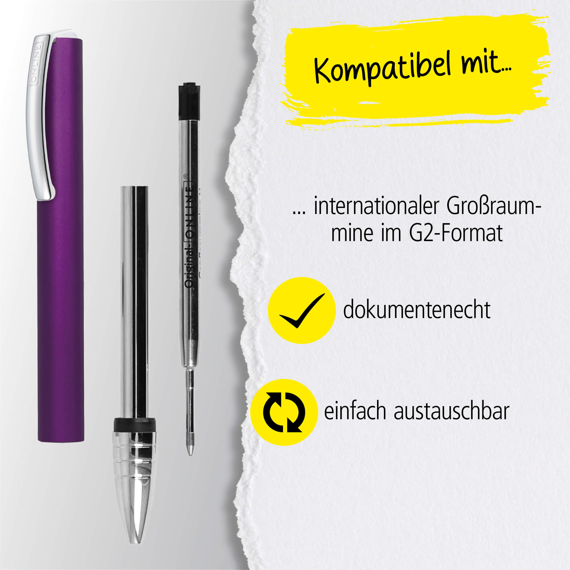 - HIGH QUALITY REFILL: To make it easy to replace, the twist action biros is fitted with a large capacity refill in standard G2 format and a stainless steel tip. Document-proof writing in black and medium line width.