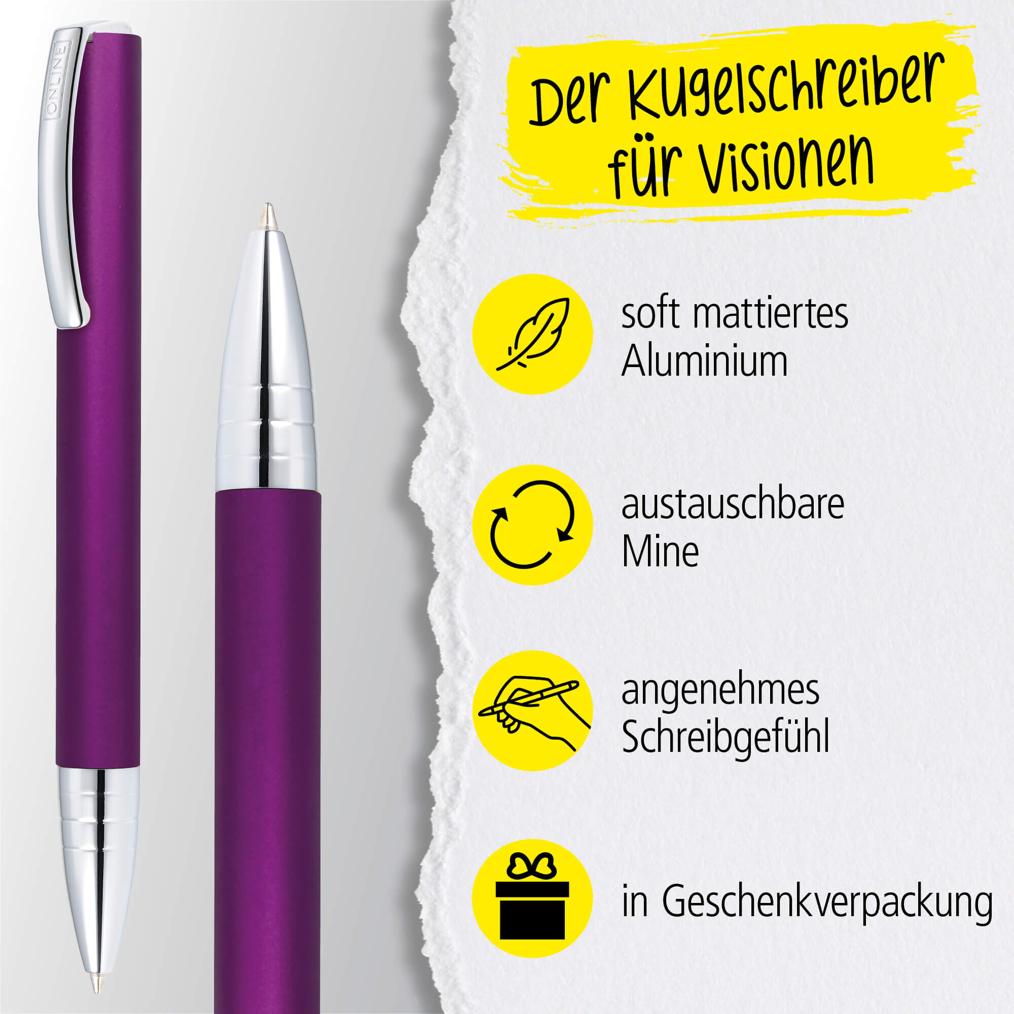 - SIMPLE ELEGANCE: The ONLINE Vision biros impresses with its high-quality, simple appearance, its robust aluminium surface and a spring-loaded metal clip - serious and ideal for university or the office.