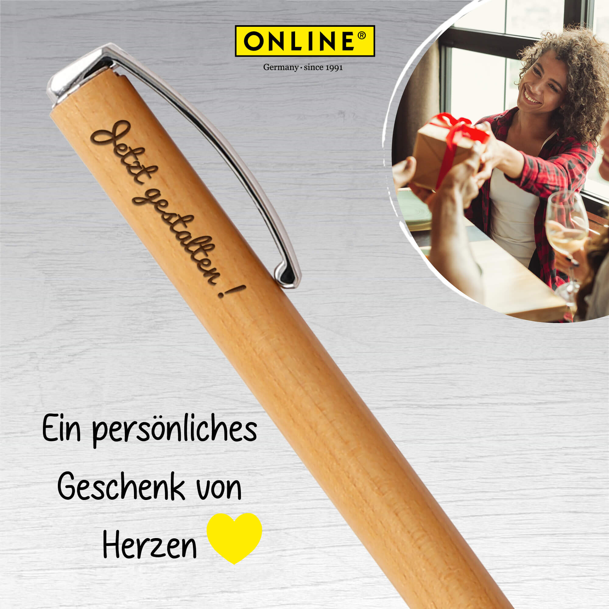 SIMPLE ELEGANCE: The ONLINE Vision ballpoint pen impresses with its high-quality, simple appearance, its smooth wooden surface and a spring-loaded metal clip – serious and ideal for university, the office or your own desk.