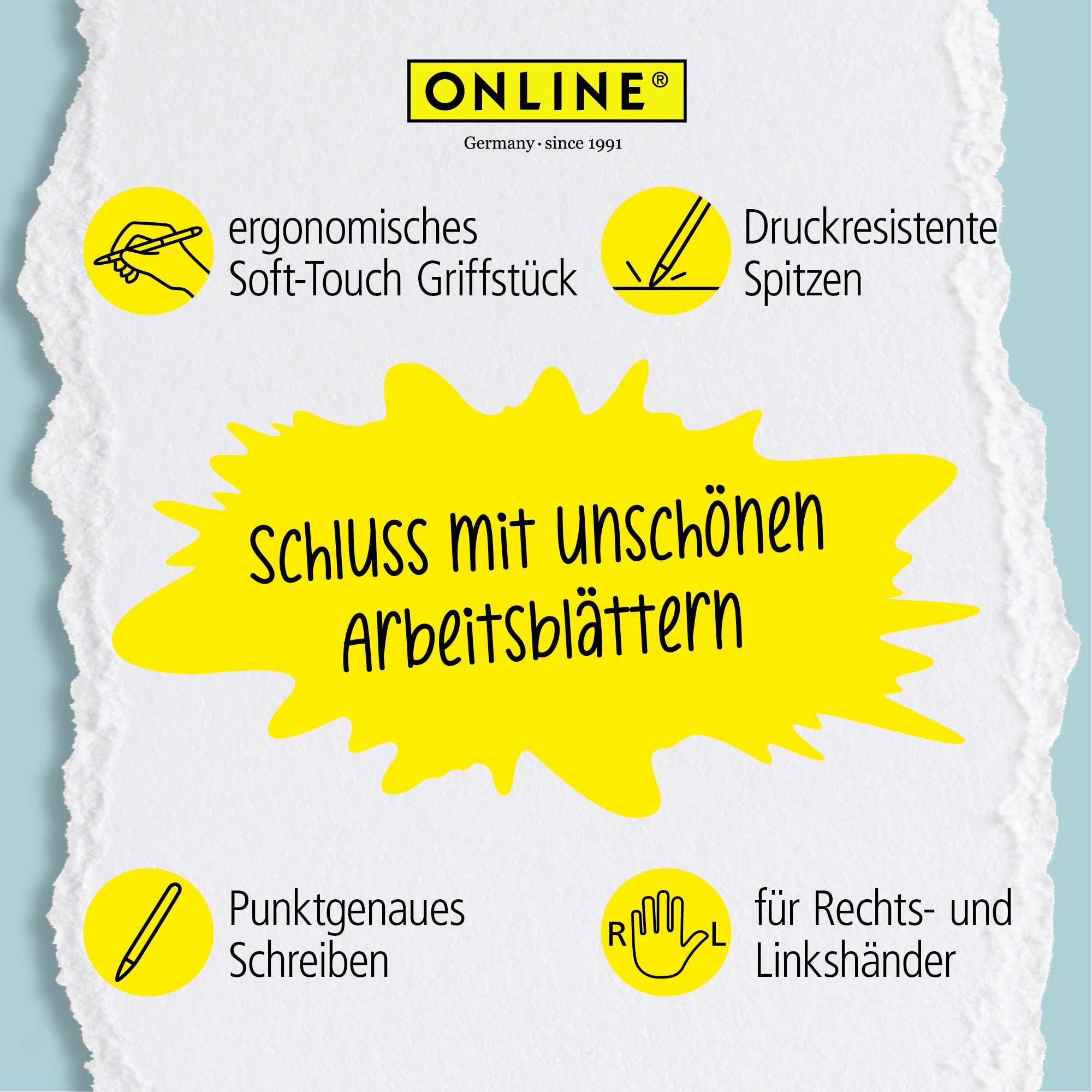 ONLINE everywhere: The erasable pens in the writing colour turquoise are ideal for learning to write & design. The ergonomic, classic design fits perfectly into everyday life, the office or university. A smart gift for all students & pupils.