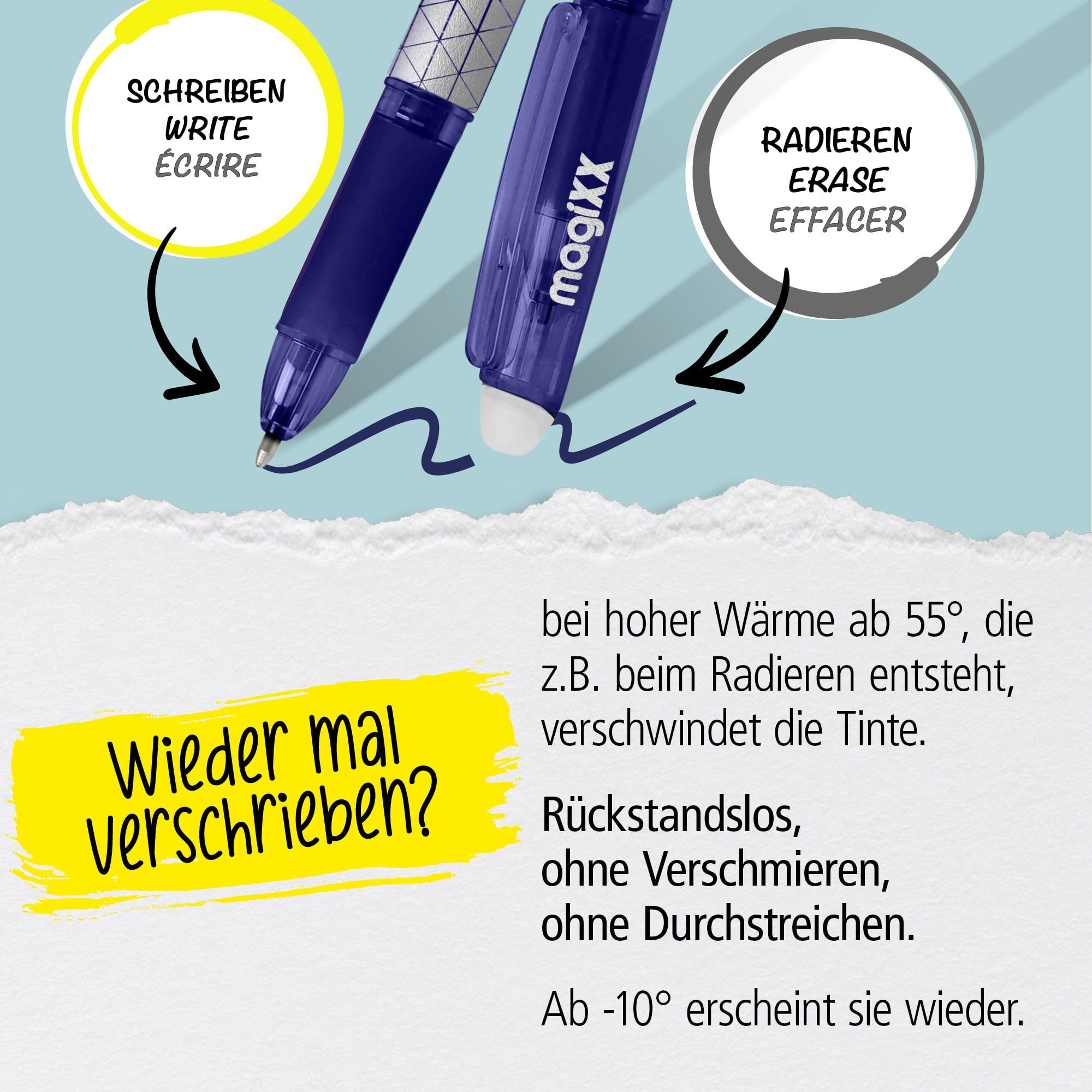 Relaxed writing: Simply erase small writing errors - the ink can be completely removed without smudging or leaving any residue. No more crossing out, typing and unsightly worksheets - thanks to erasable gel pens, you can now write everything in a relaxed manner (yes, even birthday cards 😊).