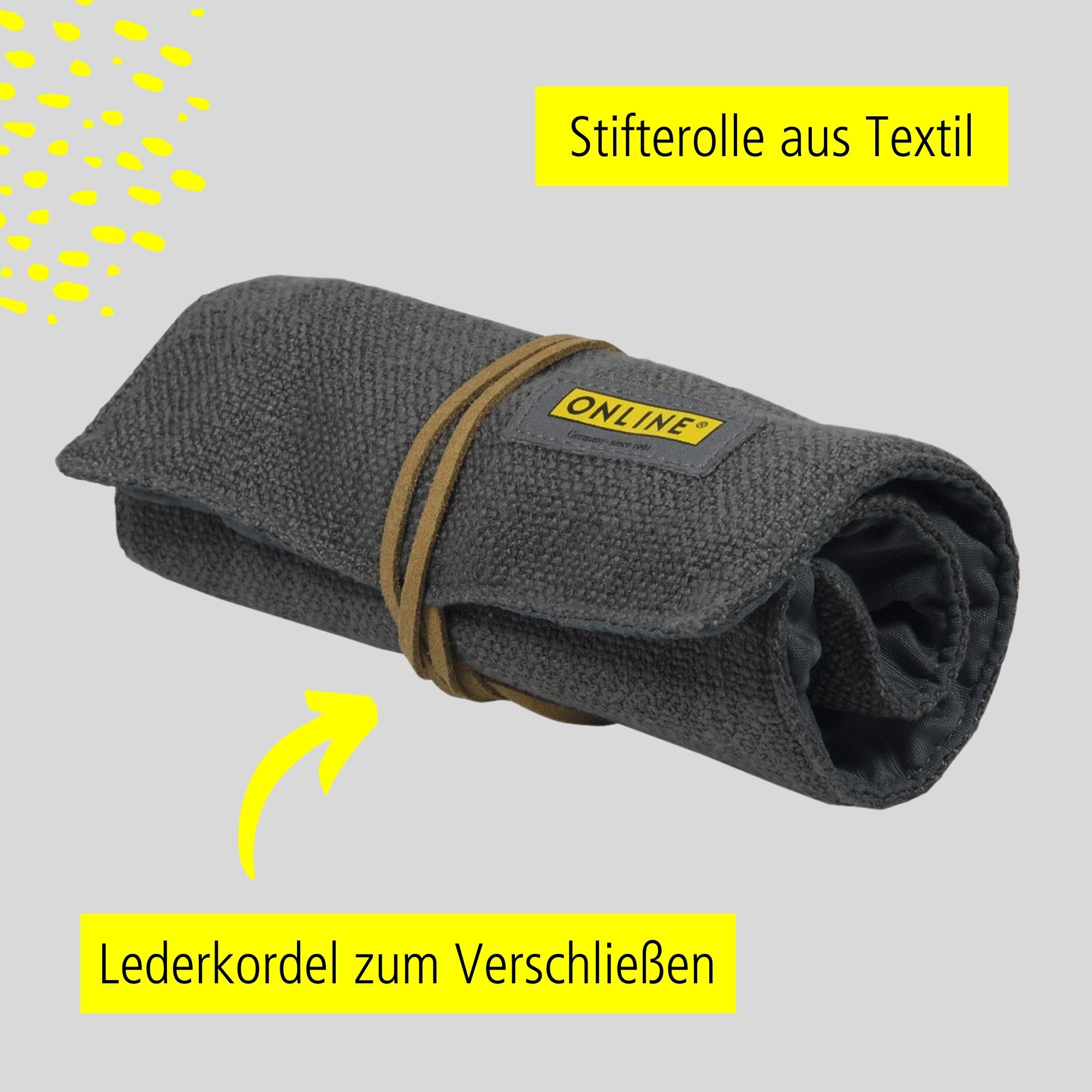 The Pen Roll is a safe and useful place to keep writing implements – handy and absolutely helpful. The round roll is made from textiles – a pleasant look and feel, functional fastener and a safe place for lots of different pens. Even the calligraphy fountain pens from ONLINE fit perfectly. The ideal accessory for anyone who loves writing, regardless of age.
