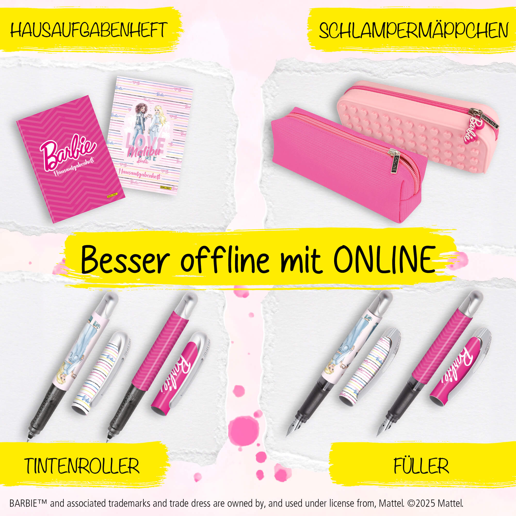Even more school accessories in Barbie design? Immerse yourself in the pink world of Barbie with the homework book, practical elasticated folders, rollerball pens or the erasable magiXX gel pens. Discover now!