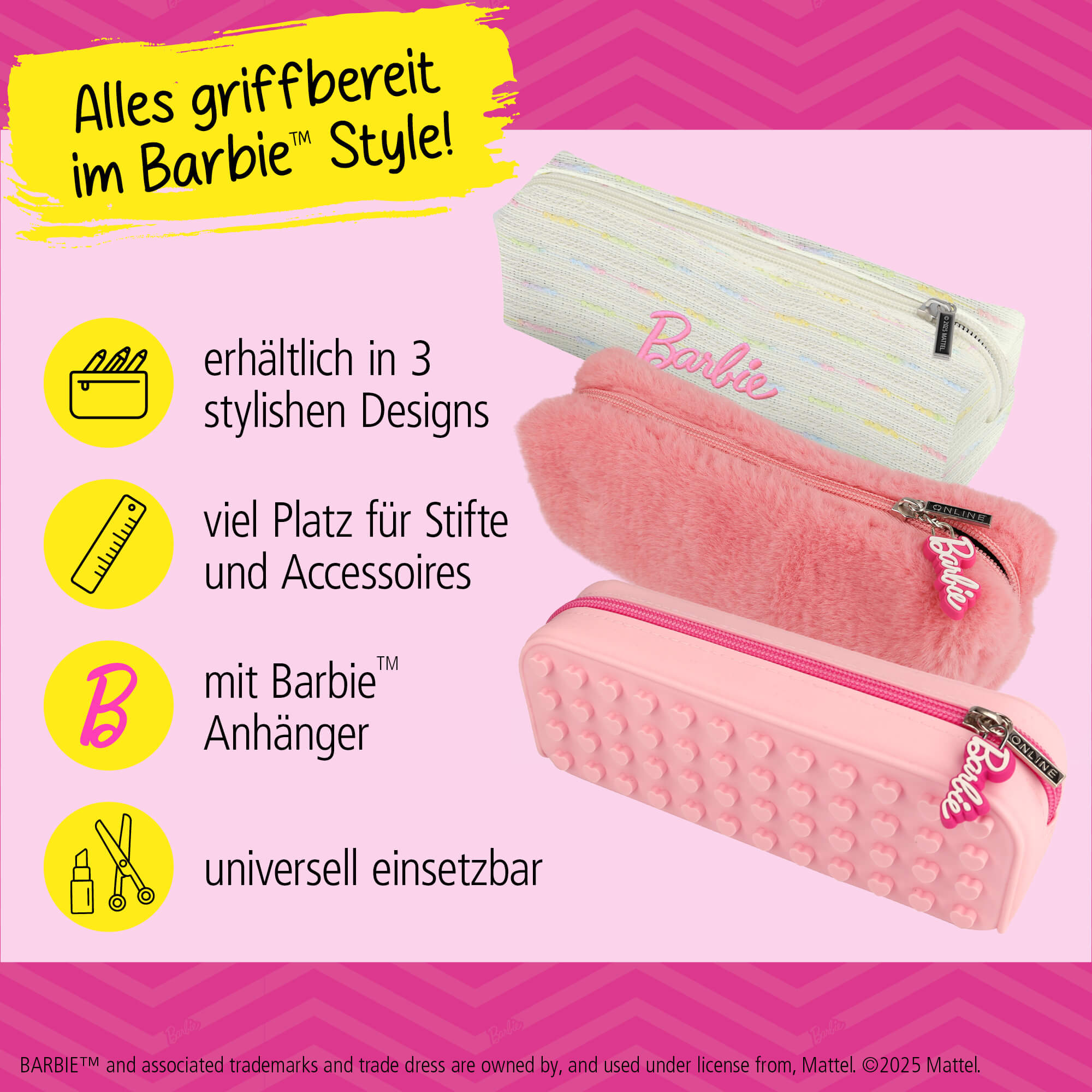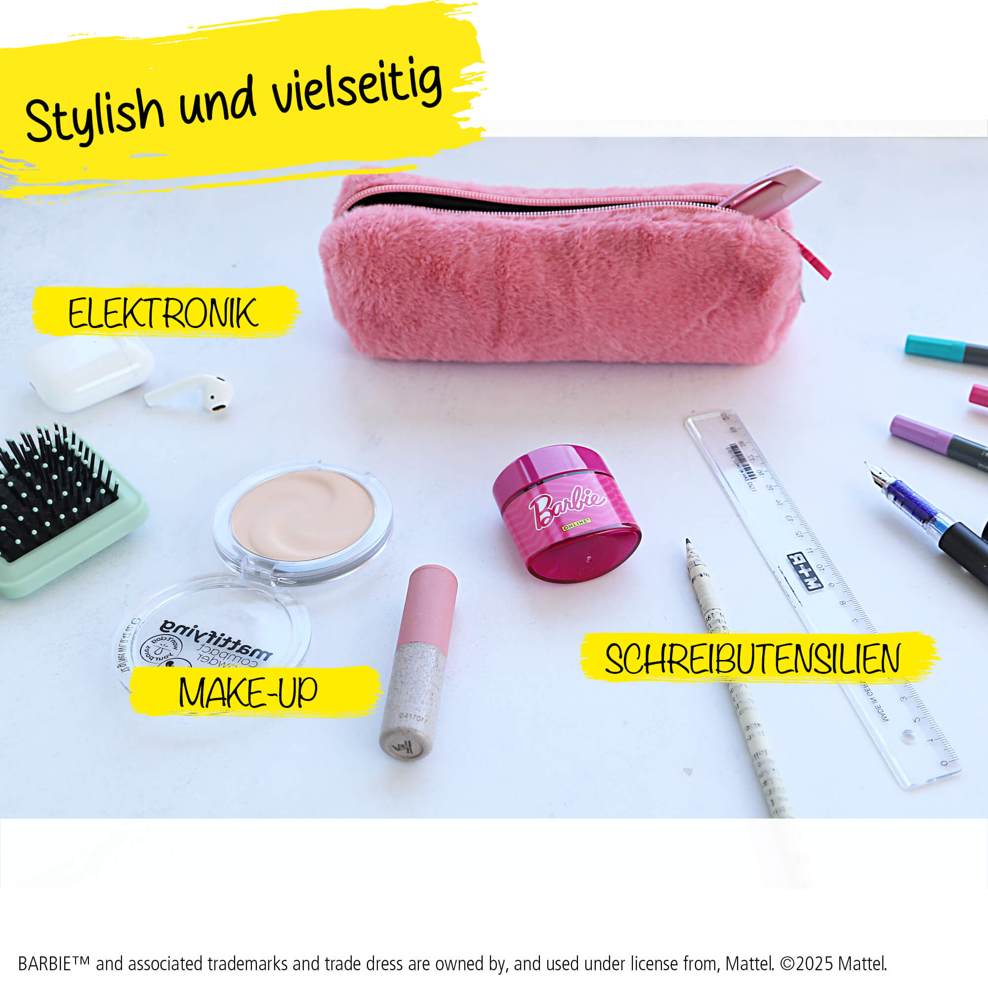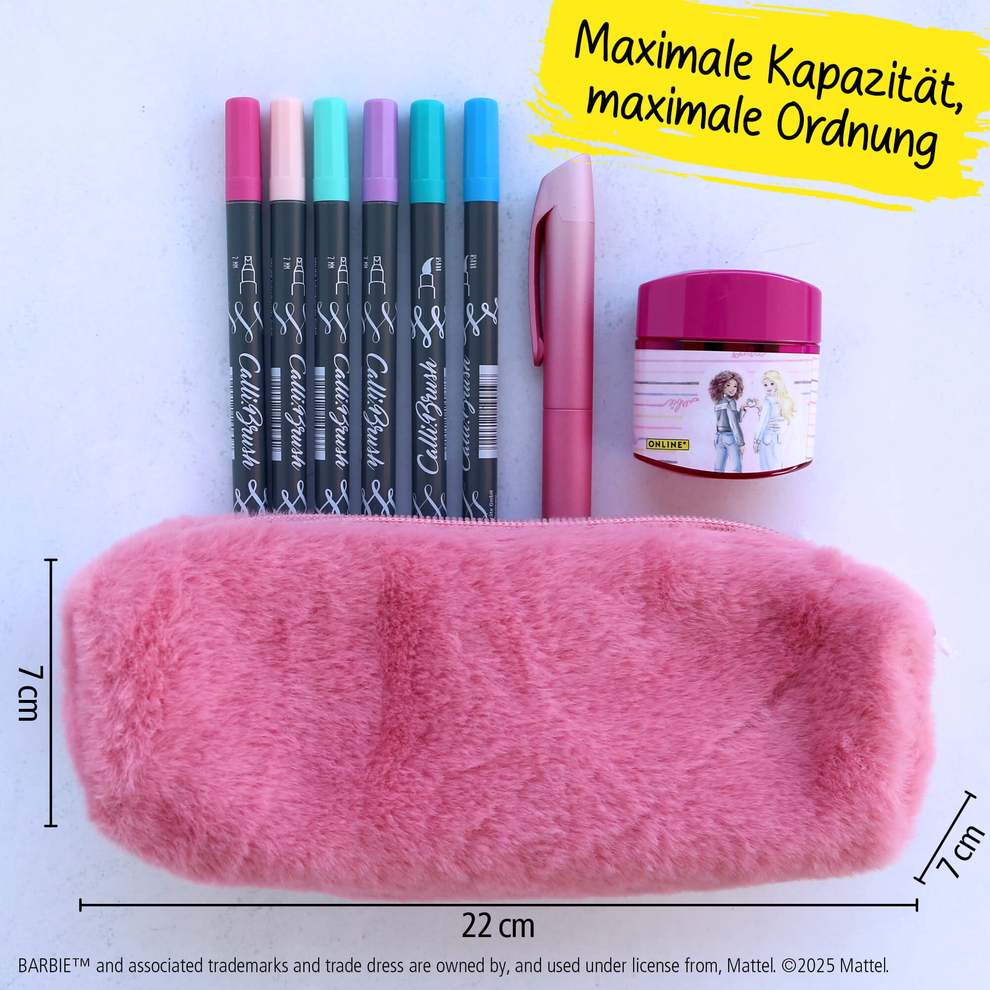 Barbie style for every day: the pink, fluffy ONLINE pencil case with Barbie zip brings order and style to everyday school life. Whether at school, at home or on the go - everything is safely stowed away and quickly to hand. A practical must-have for little fashionistas
