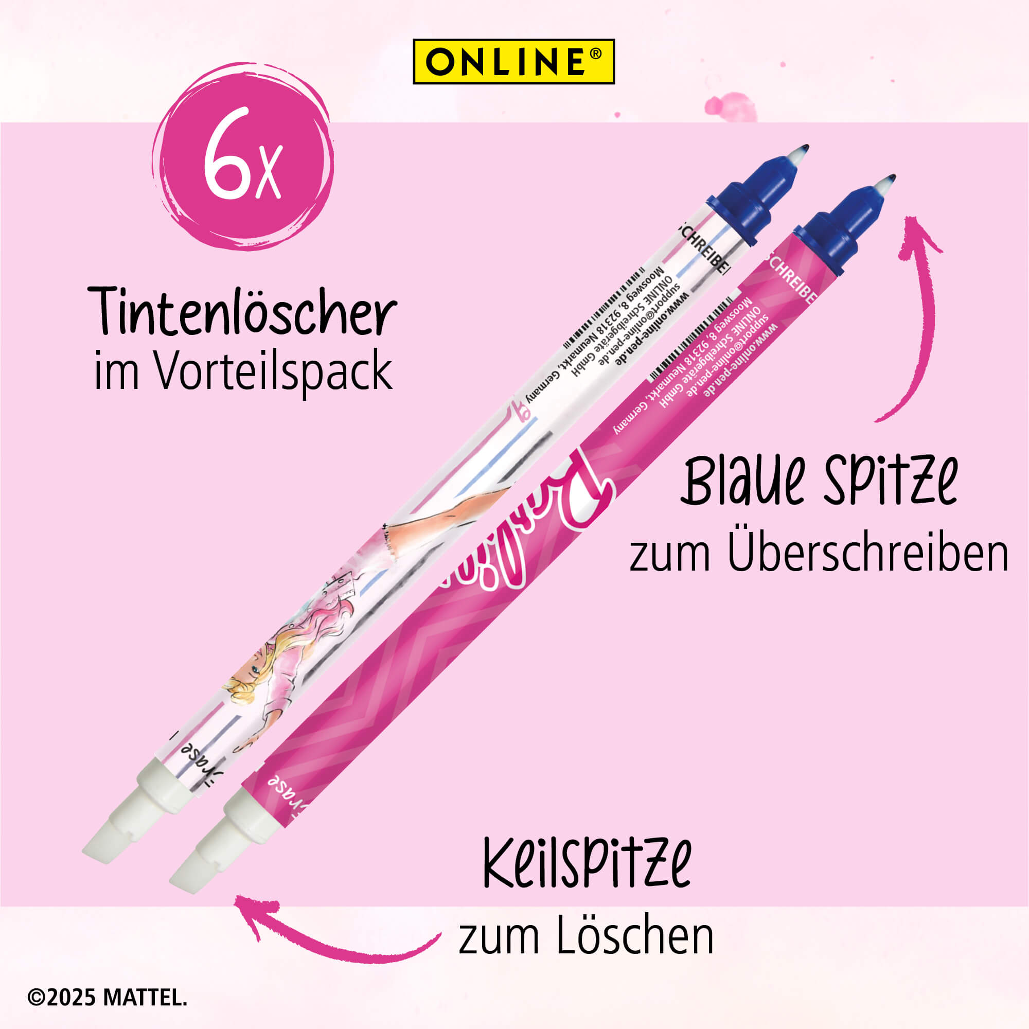 Writing with Barbie-Power: In an environment where a lot is written, mistakes are inevitable. Whether at school, university or in the office - clean erasing and overwriting saves unsightly crossing out and ensures neat handwriting. The online advantage pack of ink erasers offers the perfect solution.